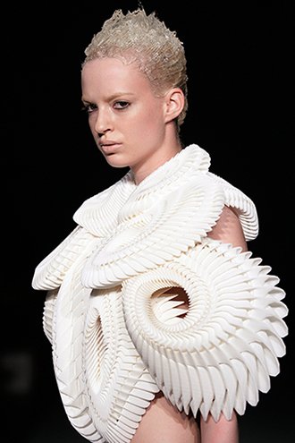 חלק מהקולקציה "קריסטליזציה", אשר תוצג במלואה בחודש הבא בשבוע האופנה בלונדון (הידוע בהיותו אוונגרדי יותר מאחיו הבולטים: ניו יורק, פריז ומילאנו), הוא פרי שיתוף פעולה מרתק בין ואן הרפן, דניאל ווידריג (Daniel Widrig) וחברת MGX. by Materialise. אלו, שמו לעצמם מטרה ליצור קולקציה של פריטי לבוש בהדפסה תלת ממדית והצליחו ליצור חולצה לאישה ששוברת את הגבולות שבין עיצוב אופנה לעיצוב תעשייתי.