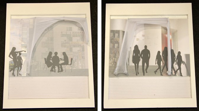 "הכנסת החלל החדש מייצרת התרחשויות בחלל המעבר החדש המחליף את הקיר הקיים המפריד בין הכניסה למוזיאון לחלל המעבדה. כאשר אנשים מהלכים במעבר, נשענים על הבד המתיח ונוגעים בחפצים הם חווים חוויה פיזית שבדרך כלל הם אינם מורגלים אליה בחלל המוזיאון. המבקרים שמשנים את החלל ויוצרים בליטות בבד גורמים לסקרנות רבה לנמצאים מחוץ למעבר וכמו כן מרמזים על הפעילות במעבדה מעברו השני".