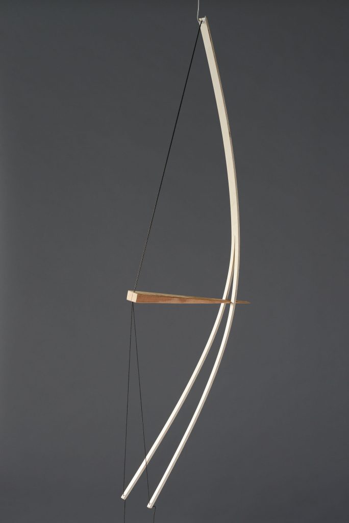 כן, את קוראת לזה "חץ". אני קורא לזה " מוט" או "המשהו הזה", שיוצר את המתיחה של המיתר. בזיכרון הקולקטיבי שלנו המשהו הזה נקרא "חץ", אבל יש לו כל מיני תצורות. זו מין הפעלה שמאפשרת לשנות את הצורה ואת המאזן בין החלקים של המבנה ולהתאתגר, מהמילה אתגר. מה אפשר לעשות עם הדבר הזה? What next?