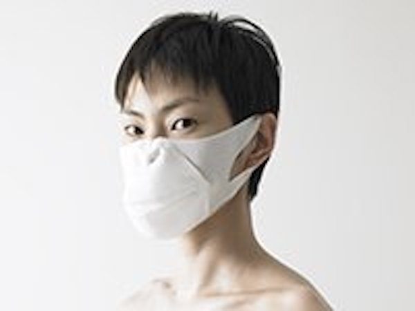 Another nonwoven fabric uses polyester filament fibers to create a robust material that is light and does not tear easily. It is highly thermoplastic and can be easily shaped by applying heat, which enables it to be used for 3D forming of products with substantial depth. It has good permeability for air and liquids, and provides a smooth surface that is easy to print on. For Tokyo Fiber ’09, two creators used this material. One has created pollen masks realistically shaped like a classically beautiful female face, and the other has created lamps like traditional paper lanterns, but with the fabric formed by blowing it up like a balloon. Both of these exhibits demonstrate the manufacture of three-dimensional forms from flat material without sewing, providing a hint to future textile materials.