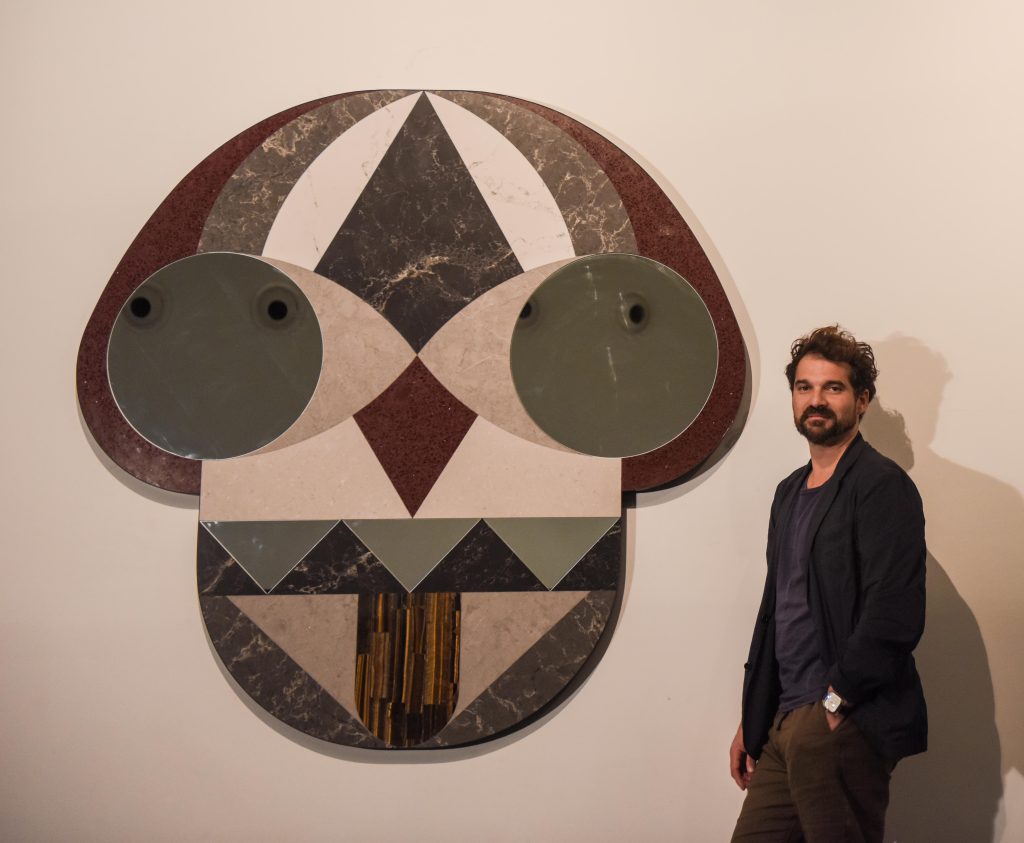 בתערוכה הוצגה פני מראה, עבודה חדשה של חיון שנתרמה לאוסף המוזיאון באדיבות חברת "אבן קיסר".